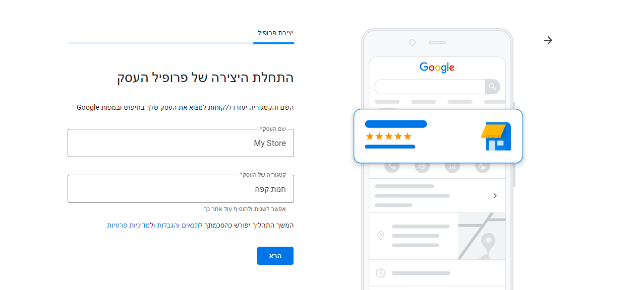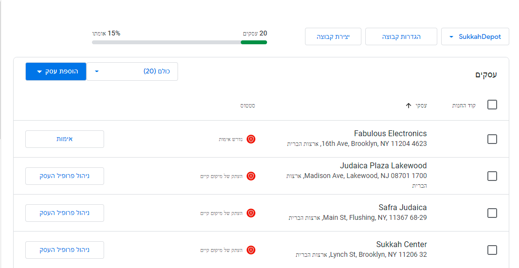 לאחר שהוספנו את הפרטים ובצענו עריכות, יש לאמת את העסק
